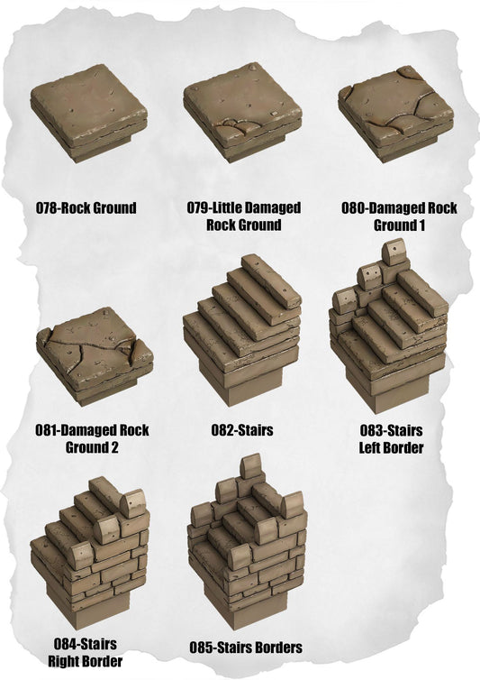 Ramparts & Ruins Tiles – Ruined Ground & Stairs Pack (RR-078 to RR-085)