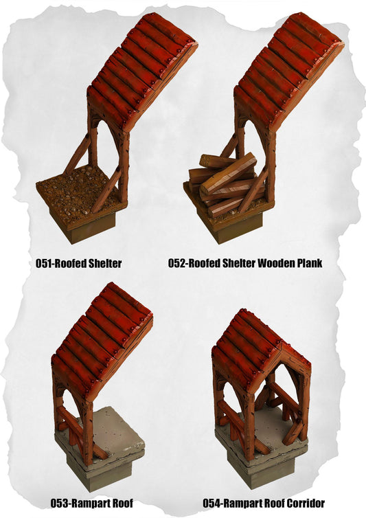 Ramparts & Ruins Tiles – Shelters & Rampart Roof Pack (RR-051 to RR-054)