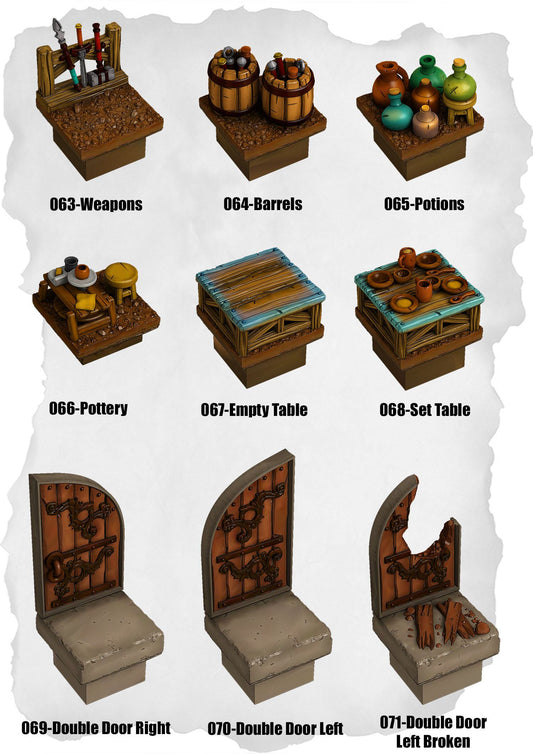 Ramparts & Ruins Tiles – Storage & Door Pack (RR-063 to RR-071)