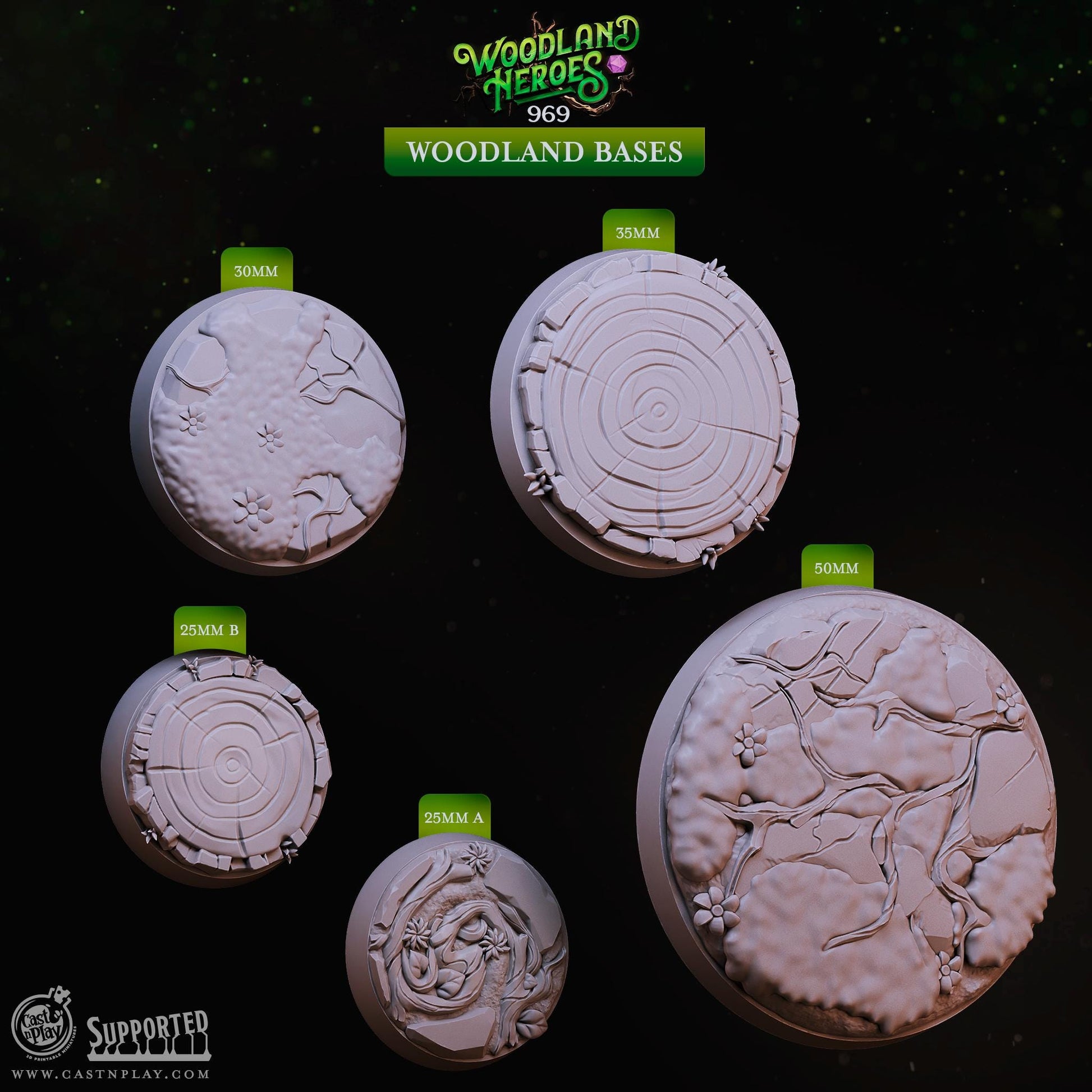 32/28mm The Woodland Bases, CastnPlay miniatures , Role Playing Games Miniature, WoW, Dungeon and Dragons, RPG, DnD.