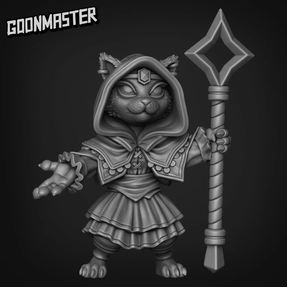 Looking for a unique and high-quality miniature figurine for your tabletop RPG game? Look no further than this unpainted grey resin catfolk mage by goons. Expertly crafted for fine details and ready for painting. Perfect for D&D, Pathfinder, and other fantasy tabletop RPGs. Add it to your collection today!