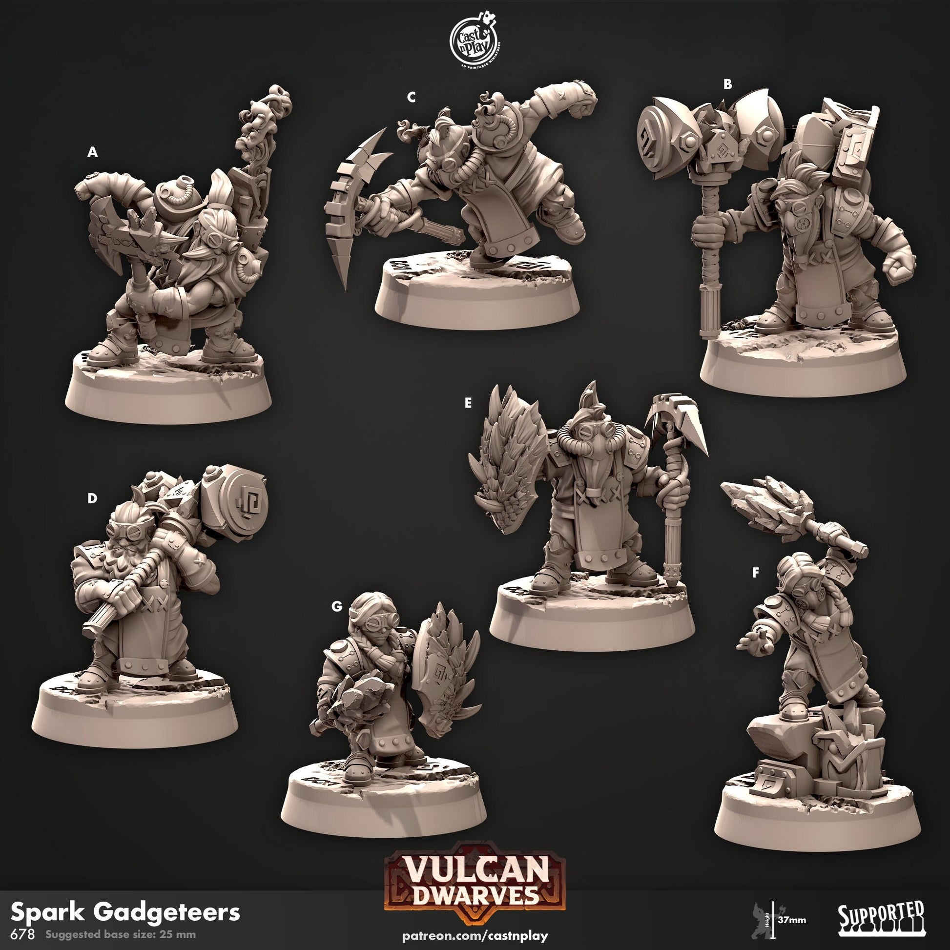 Spark Gadgeteers, Vulcan Dwarves, CastnPlay, Large miniatures , Role Playing Games Miniature, Dungeon and Dragons, Dwarves.