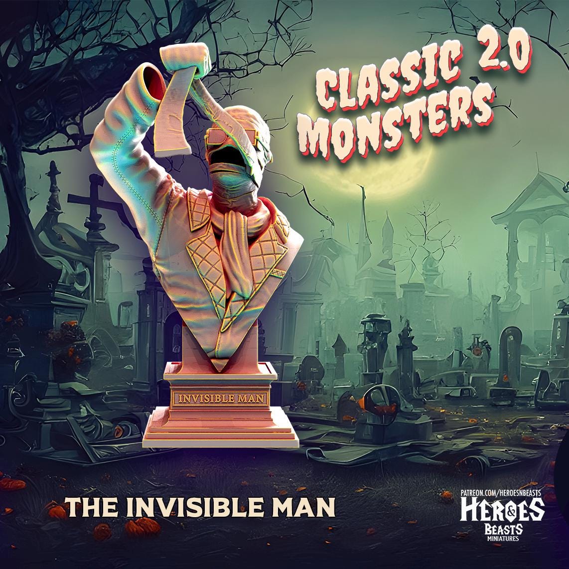 The Invisible Man, 150mm, 75mm, 32mm Scale, Bust, Role Playing Games Miniature, Horror, Films, DnD, Classic Movie.